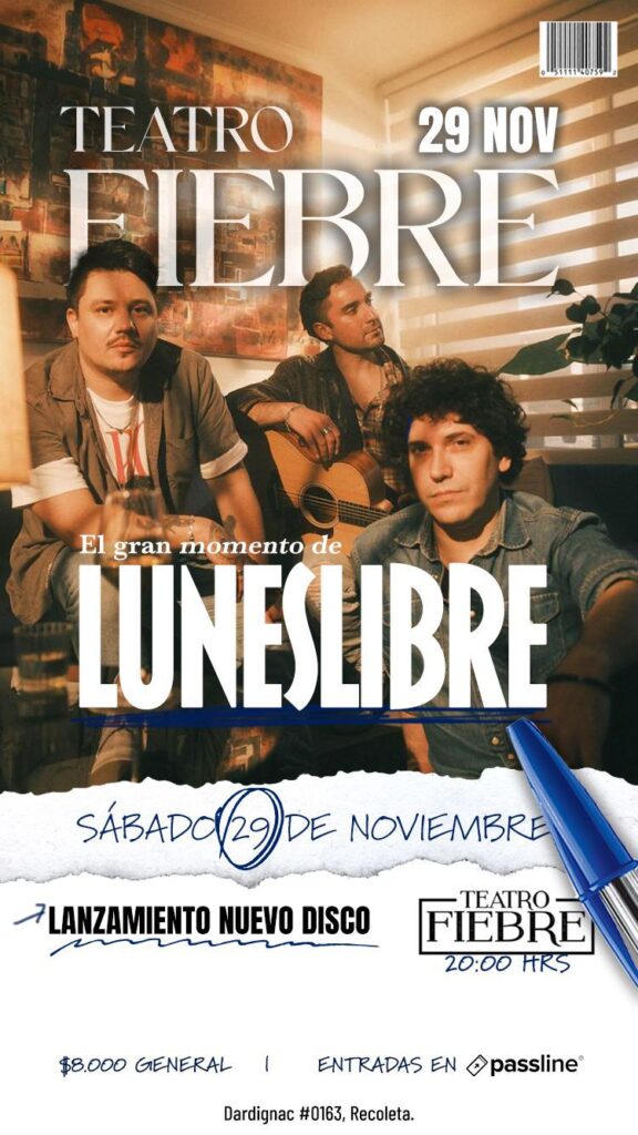 Para celebrar esta nueva etapa y presentar las 6 canciones que componen el EP, LunesLibre se tomará el escenario del Teatro Fiebre (ex Teatro Coca-Cola) el próximo 29 de noviembre.